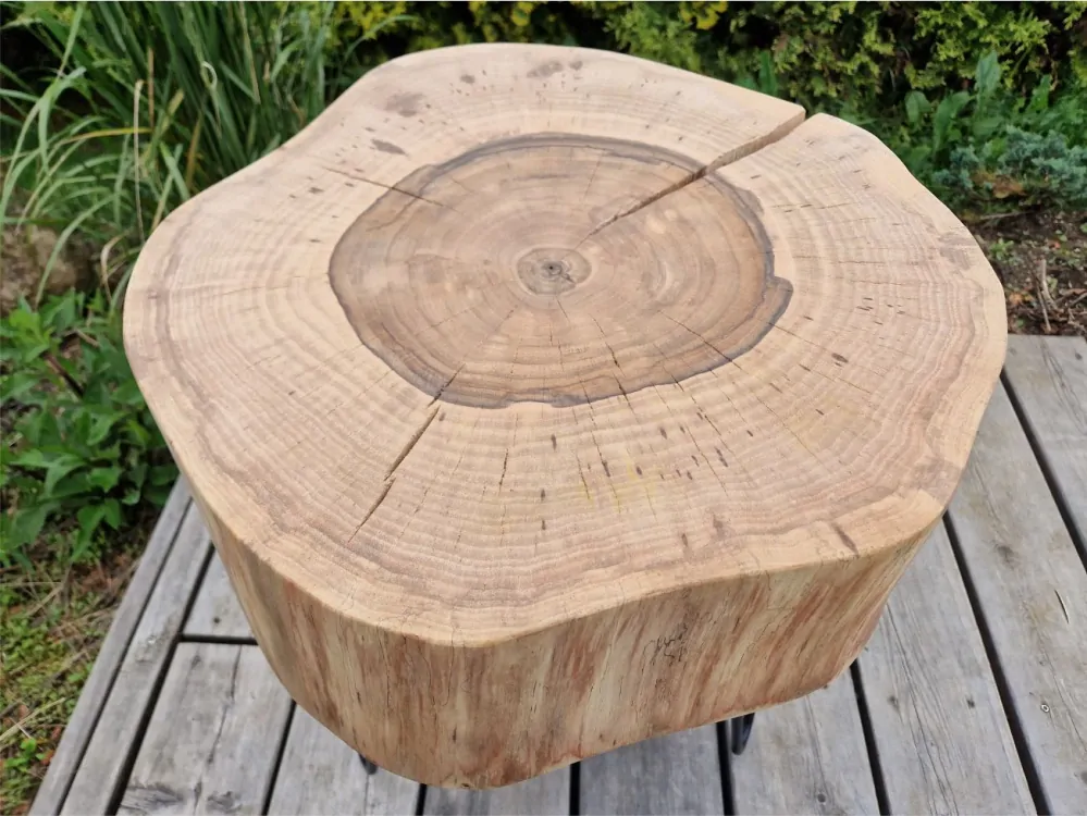 Dřevěný stolek z ořešáku, dá se použít jako odkládací, noční stolek, nebo jako dekorace. Průměr 44-47cm, síla dřeva 14cm, výška stolku 54cm. Dřevo je ručně opracované, zfrézované, obroušené, Povrchová úprava je ošetřena Osmo olejem. Tento originální stolek udělá radost všem kteří se chtějí lišit od ostatních.